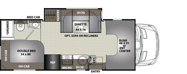 - HVAC: 20,000BTU furnace, 13,500 BTU Roof A/C
